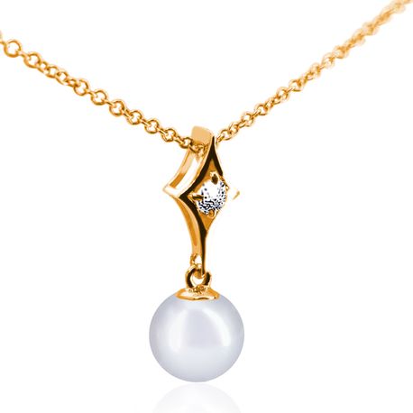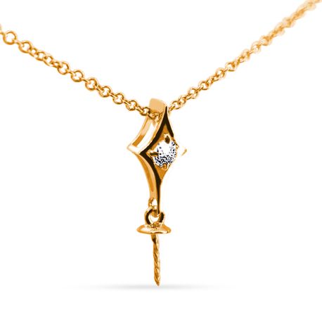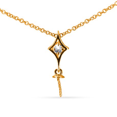 14k yellow gold 0.09ct. SI2 G-H Diamond Prong Setting Stiff Dangling"Star" 6.50mm Diamond Pearl Pendant for Any pearl size |