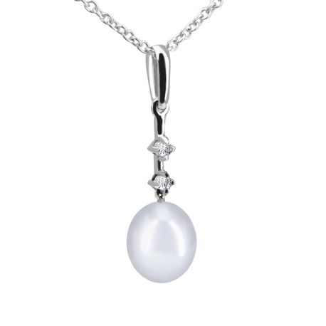 14k white gold 0.04ct. SI2 G-H Diamond Prong Setting DanglingDelicate 3mm x 16mm Diamond Pearl Pendant for Any pearl size