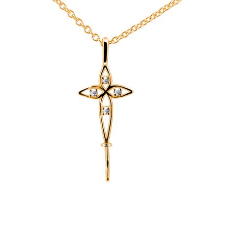 14k yellow gold 0.06ct. SI2 G-H Diamond Shiny Finish Stiff DanglingCross 10.50mm x 18mm Holy Cross Diamond Pearl Pendant for Any pearl size