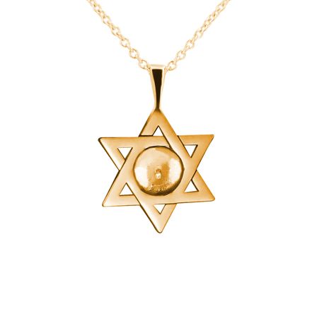 14K Yellow Gold 17.50mm Star of David Shiny Finish Pendant for 7mm - 9mm size Pearl Pendant