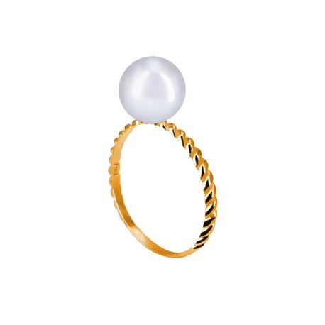 14k yellow gold Non Diamond Pearl Ring With "rope" design for 9mm - 10mm pearl size, size 7